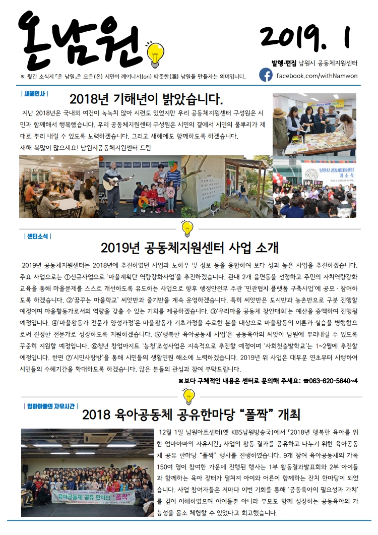 [온남원소식지] 2019년도 제2호 - 첨부파일 : 온남원소식지 2019.1월호.pdf (646.3K) - 다운로드 0 2024-09-04 16:36:21 이전글 다음글 목록 본문 .
