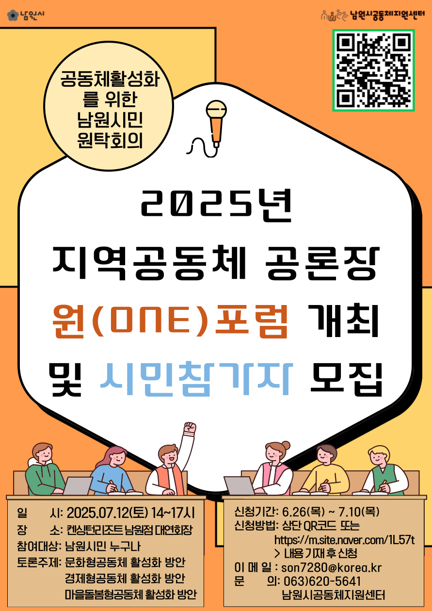 2025년 지역공동체 공론장 "원(ONE) 포럼" 개최 및 시민참가자 모집 2025-06-30 15:43