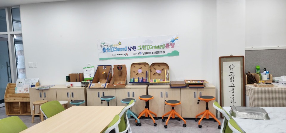 [죽항동] 청소년문화의집 동아리실 이전글 다음글 목록 본문 운영기관 청소년문화의집 전화번호 063-625-3333 수용인원 20인 이하 홈페이지 - 이용대상 취학어린이(7~12세), 청소년(13~18세), 청년(19~39세), 남원시민 주소 55775 전북특별자치도 남원시 관서당길 35 별관 (쌍교동, 남원청소년문화의집) 운영시간 1. 평일: 09:00 ~ 18:00 / 2. 주말: 09:00 ~ 20:00 공간유형 회의, 모임 사용료 무료 신청방법 전화 주차가능여부 가능 부대시설 및 장비 책상, 의자 유아동반 가능 시설상태 매우좋음 특이사항 1. 청소년 우선 사용 공간 2. 월요일 휴관